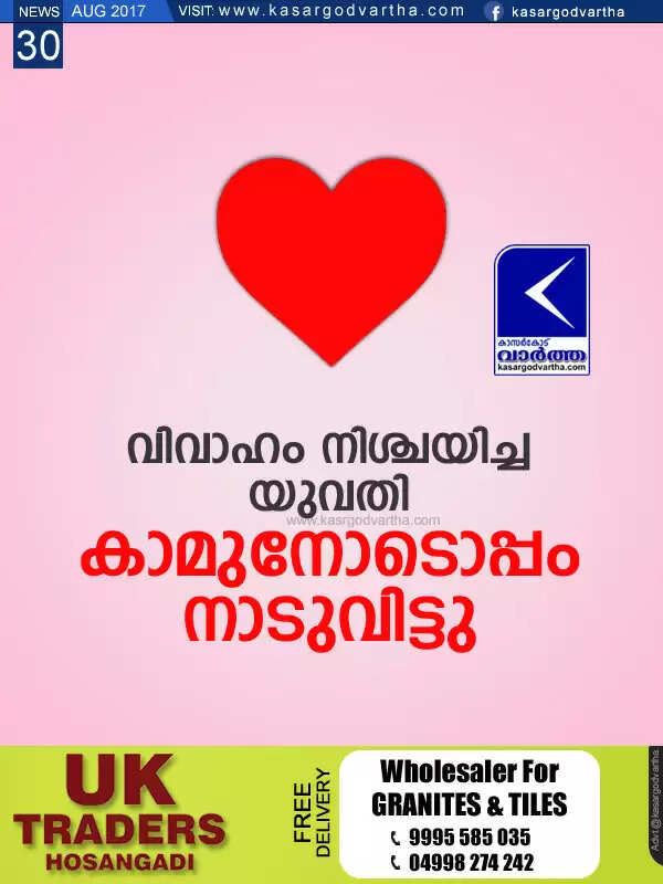 വിവാഹം നിശ്ചയിച്ച യുവതി കാമുനോടൊപ്പം നാടുവിട്ടു