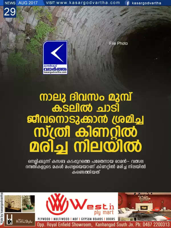 Keywords: Kasaragod, Kerala, news, Death, Nellikunnu, Well, Woman found dead in well