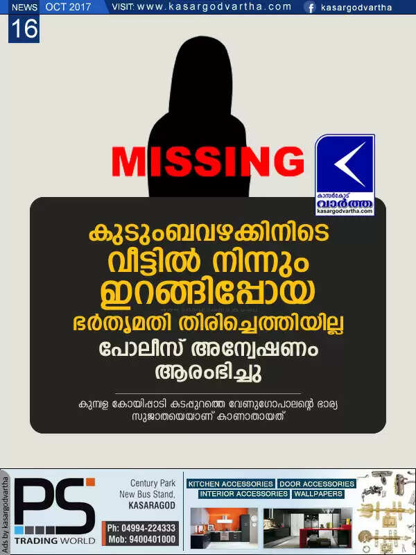 Keywords:  Kasaragod, Kerala, news, Missing, Police, Investigation, Woman goes missing; police investigation started