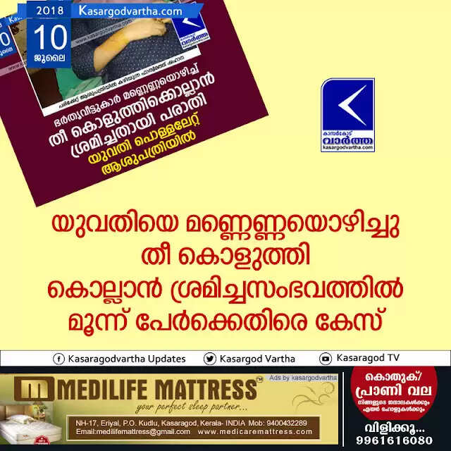 Keywords: Kumba, Kasaragod, Case, Housewife, Burning attack, Injured woman