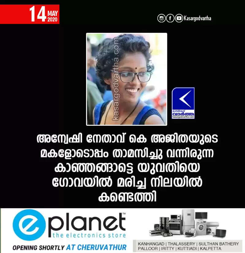 അന്വേഷി നേതാവ് കെ അജിതയുടെ മകളോടൊപ്പം താമസിച്ചു വന്നിരുന്ന കാഞ്ഞങ്ങാട്ടെ യുവതിയെ ഗോവയില് മരിച്ച നിലയില് കണ്ടെത്തി
