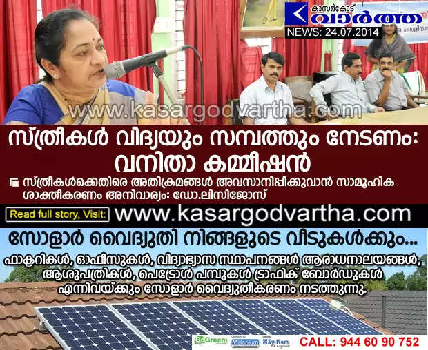 സ്ത്രീകള്‍ വിദ്യയും സമ്പത്തും നേടണം: വനിതാ കമ്മീഷന്‍