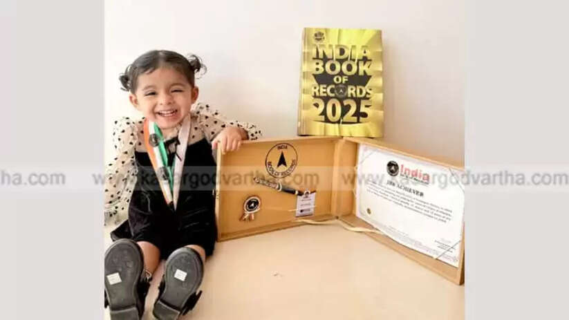 A one-year-old and 10-month-old girl from Kasaragod, Yara Hairin Khadeeja, has achieved a place in the India Book of Records. She recognized 16 objects, 12 body parts, eight animals, eight vehicles, seven food items, seven fruits, and five kitchen utensils, earning her the recognition for her memory skills.