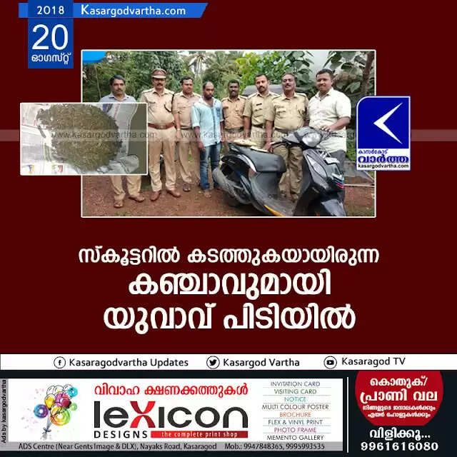 Keywords: News, Badiyadukka, Kasaragod, Kerala, Kanjavu, Youth, Arrest, Youth arrest ganja from scooter.
