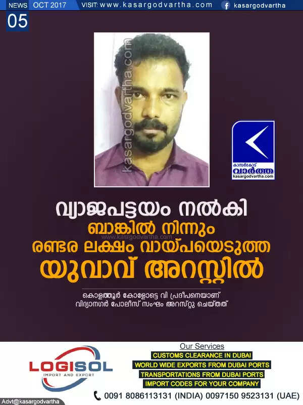 Keywords: Kasaragod, Kerala, news, Youth, arrest, Police, Bank, Bank Loans, Cheating, Youth arrested for cheating bank