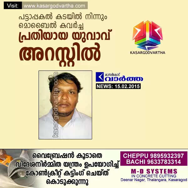 Keywords : Kasaragod, Robbery, Mobile Phone, Case, Shop, Complaint, Accuse, Arrest, Kerala, Kanhangad, PV Rasheed.