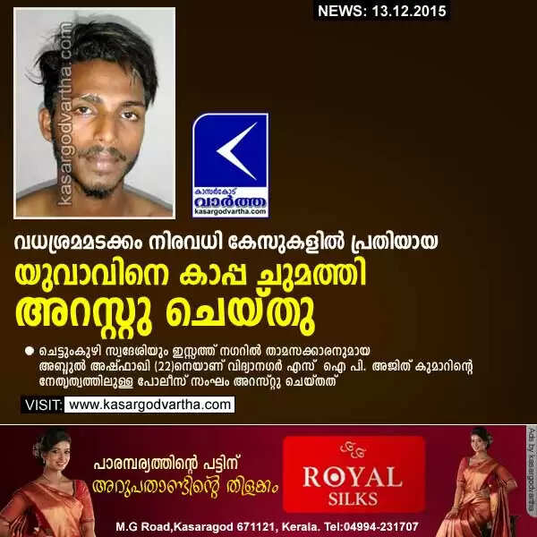 Keywords: Vidya Nagar, kasaragod, case, Police, arrest, Youth arrested under KAPPA act.