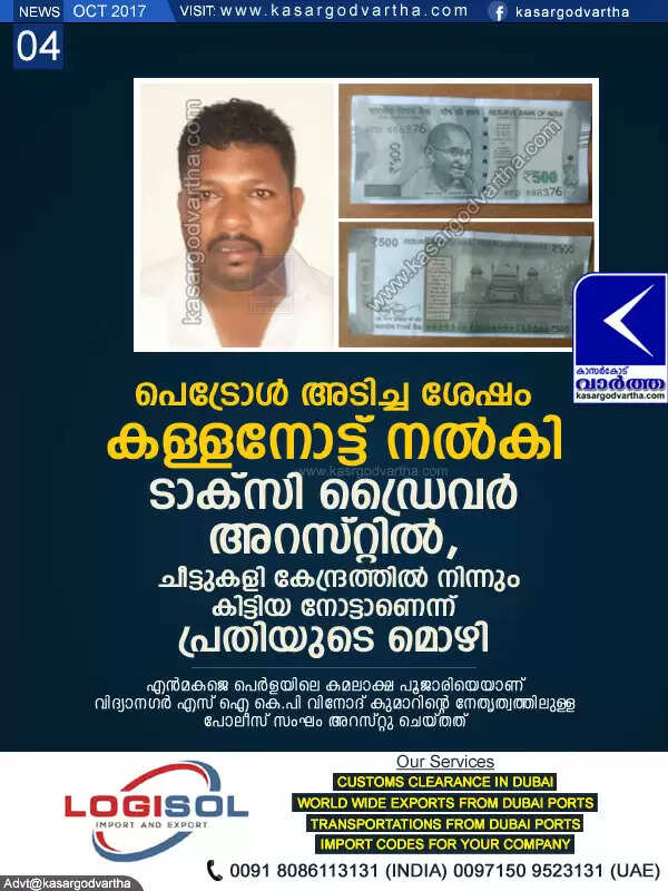 പെട്രോള് അടിച്ച ശേഷം കള്ളനോട്ട് നല്കി; ടാക്സി ഡ്രൈവര് അറസ്റ്റില്, ചീട്ടുകളി കേന്ദ്രത്തില് നിന്നും കിട്ടിയ നോട്ടാണെന്ന് പ്രതിയുടെ മൊഴി