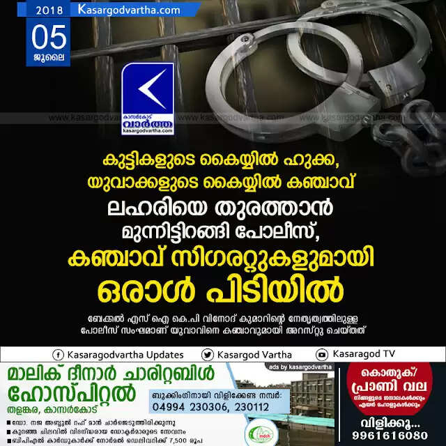 കുട്ടികളുടെ കൈയ്യില് ഹുക്ക, യുവാക്കളുടെ കൈയ്യില് കഞ്ചാവ്; ലഹരിയെ തുരത്താന് മുന്നിട്ടിറങ്ങി പോലീസ്, കഞ്ചാവ് സിഗരറ്റുകളുമായി ഒരാള് പിടിയില്