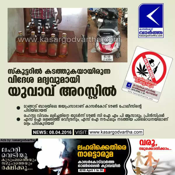 Keywords : Scooter, Youth, Arrest, Liquor, Kasaragod, Mangad, Police, Jayaprasad.