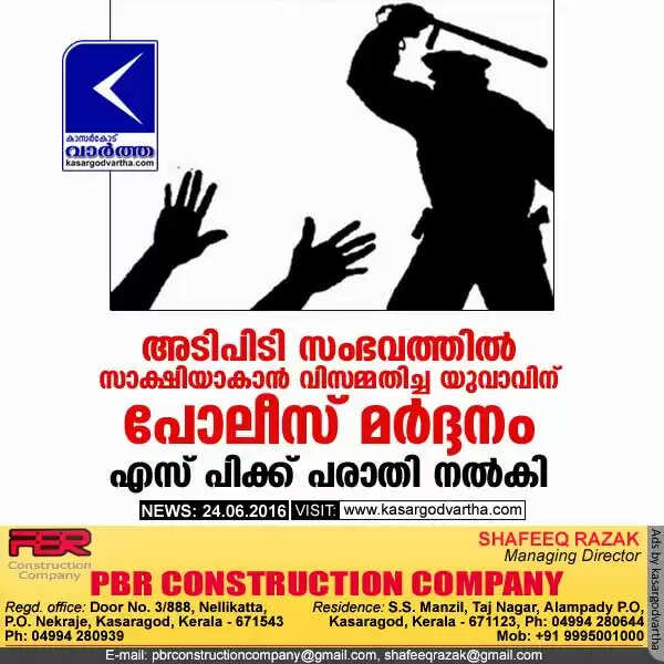 അടിപിടി സംഭവത്തില് സാക്ഷിയാകാന് വിസമ്മതിച്ച യുവാവിന് പോലീസ് മര്ദ്ദനം; എസ് പിക്ക് പരാതി നല്കി