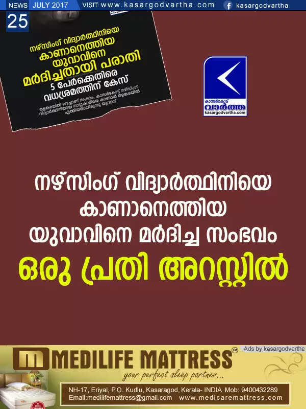 Keywords: Kasaragod, Student, Youth, Arrest, Assault, Case, Police, Harber, Youth assaulted case; Accused arrested.