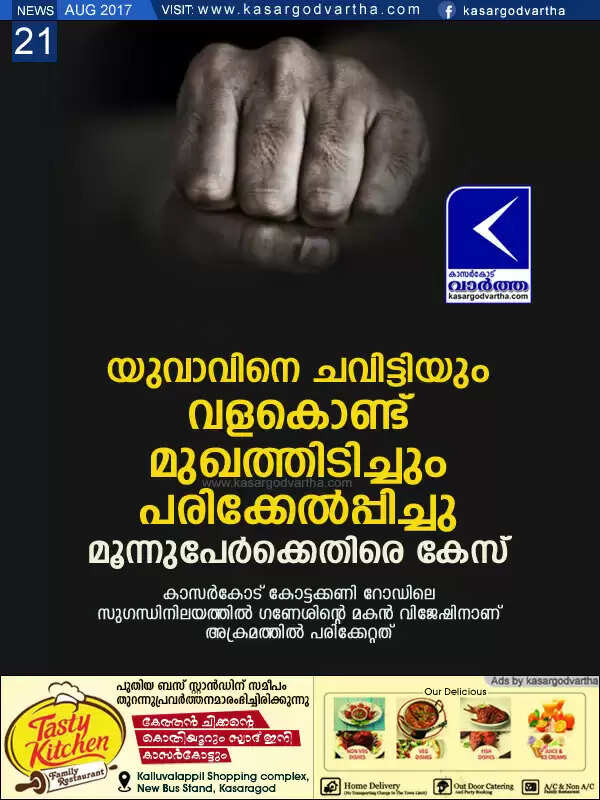 Keywords: Kasaragod, Kerala, news, Injured, case, Police, Youth, Youth assaulted; case against 3