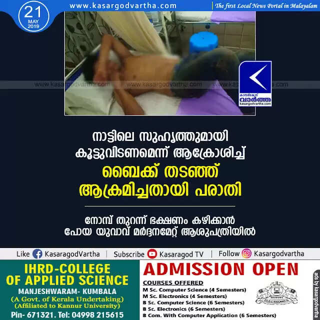 Keywords: Kasaragod, Kerala, news, Deli, Assault, Injured, hospital, Youth, complaint, Police, Youth assaulted in Deli.
