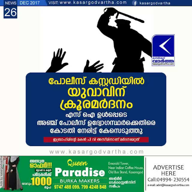 Keywords: Kasaragod, Kerala, news, Police, custody, Assault, Youth assaulted in Police custody; Case against 5 police officers