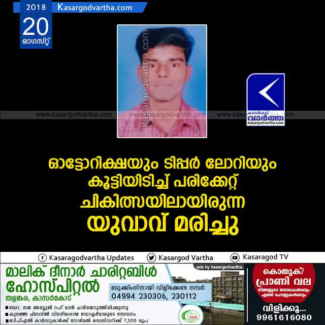 Keywords: Kasaragod, Kerala, News, Kuttikol, Auto Driver, Accidental-Death, Treatment, Youth, injury, Youth died after accident injury.
