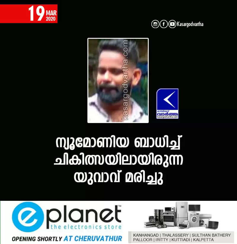 ന്യൂമോണിയ ബാധിച്ച് ചികിത്സയിലായിരുന്ന യുവാവ് മരിച്ചു