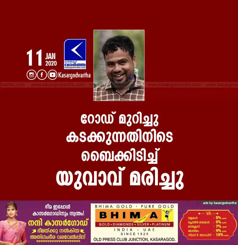 റോഡ് മുറിച്ചു കടക്കുന്നതിനിടെ ബൈക്കിടിച്ച് യുവാവ് മരിച്ചു