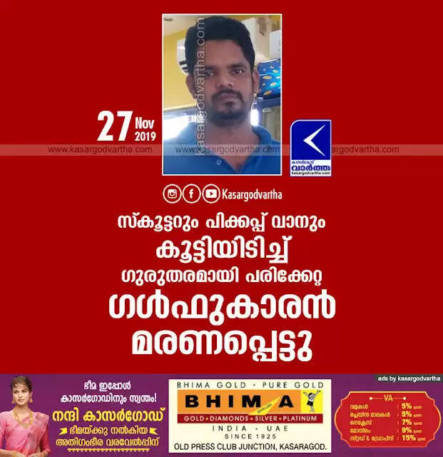 സ്കൂട്ടറും പിക്കപ്പ് വാനും കൂട്ടിയിടിച്ച് ഗുരുതരമായി പരിക്കേറ്റ ഗള്ഫുകാരന് മരണപ്പെട്ടു