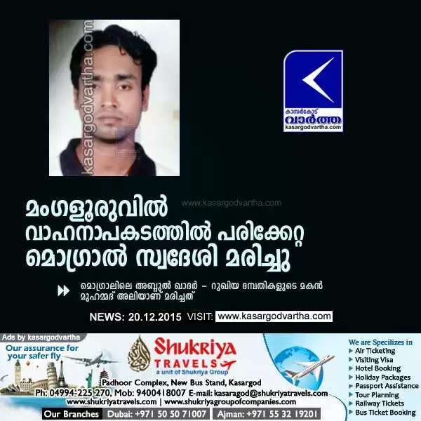 മംഗളൂരുവില് വാഹനാപകടത്തില് പരിക്കേറ്റ മൊഗ്രാല് സ്വദേശി മരിച്ചു