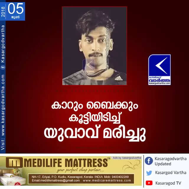 Keywords:  Accidental-Death, news, kasaragod, Kerala, Youth, Bekal, Road, Accident, Youth dies in accident, Sharafudheen.