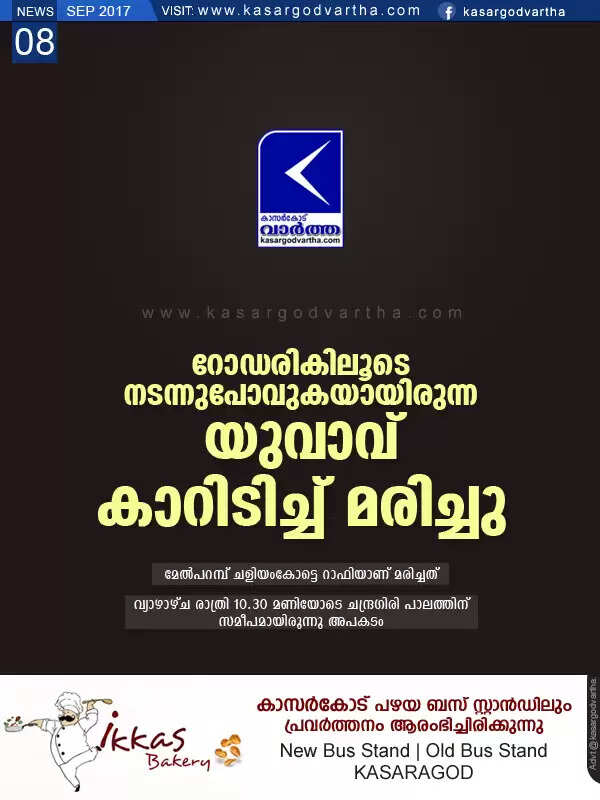 Keywords : Kasaragod, Chemnad, Accident, Car, Injured, Melparamba, Rafi, Chaliyamgod, KSTP Road, Youth dies in accident.