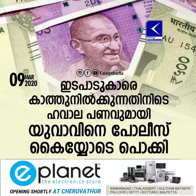 ഇടപാടുകാരെ കാത്തുനില്‍ക്കുന്നതിനിടെ ഹവാല പണവുമായി യുവാവിനെ പോലീസ് കൈയ്യോടെ പൊക്കി