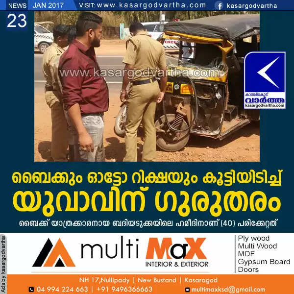 Keywords: Pallikara, Accident, Kasaragod, Kerala, Bike-Accident, Auto-rickshaw, Youth injured in a accident