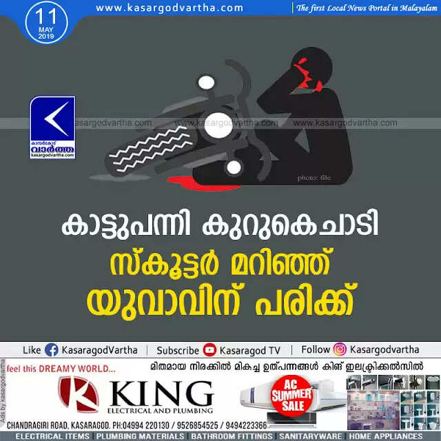 Keywords: Kasaragod, Kerala, news, Youth, Injured, Scooter, Accident, Rajapuram, Youth injured in scooter accident