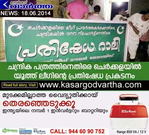 ചന്ദ്രിക പത്രത്തിനെതിരെ ചെര്‍ക്കളയില്‍ യൂത്ത് ലീഗിന്റെ പ്രതിഷേധ പ്രകടനം