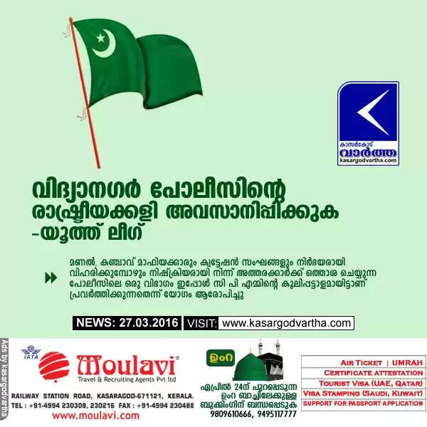 വിദ്യാനഗര് പോലീസിന്റെ രാഷ്ട്രീയക്കളി അവസാനിപ്പിക്കുക: യൂത്ത് ലീഗ്