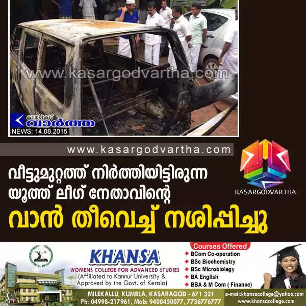 Keywords: Kasaragod, Kerala, House, Youth League, Youth League Leader, set fire, Youth League Leader's van set fire.