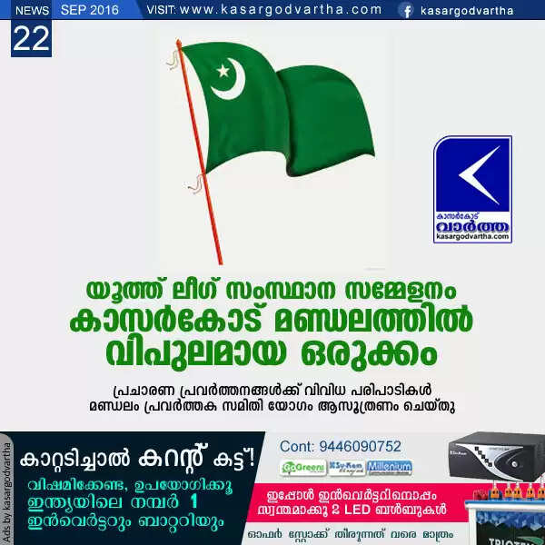 യൂത്ത് ലീഗ് സംസ്ഥാന സമ്മേളനം കാസര്കോട് മണ്ഡലത്തില് വിപുലമായ ഒരുക്കം