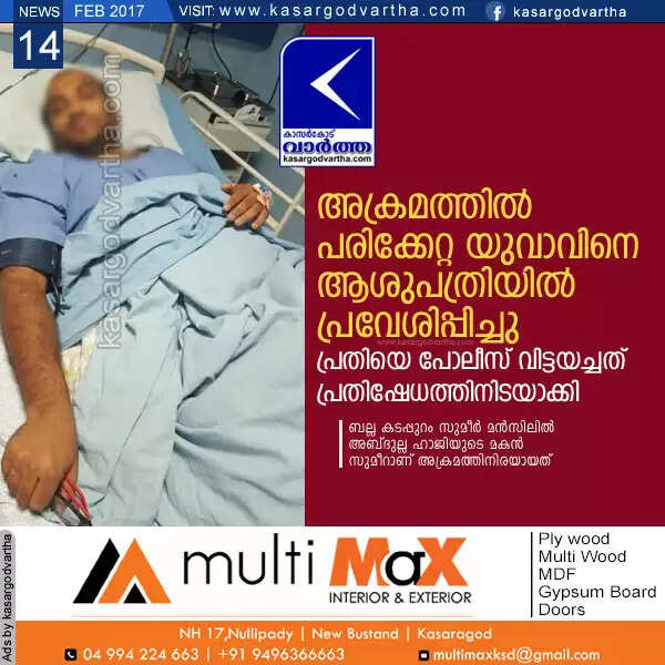 അക്രമത്തില് പരിക്കേറ്റ യുവാവിനെ ആശുപത്രിയില് പ്രവേശിപ്പിച്ചു; പ്രതിയെ പോലീസ് വിട്ടയച്ചത് പ്രതിഷേധത്തിനിടയാക്കി