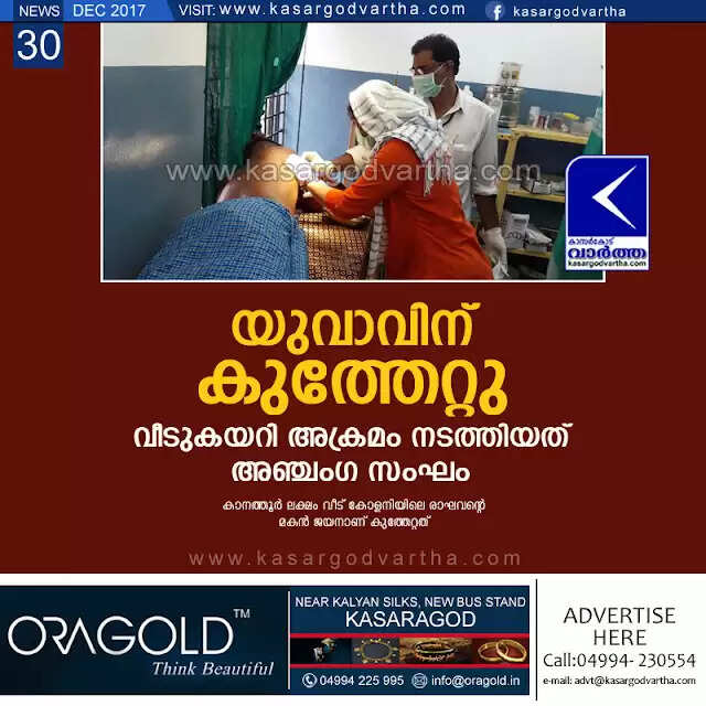 Keywords: Kasaragod, Kerala, news, Attack, Youth, Stabbed, House, Youth stabbed by 5