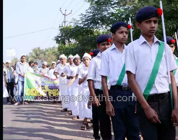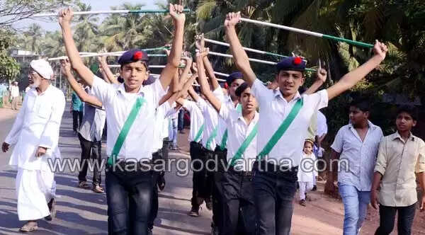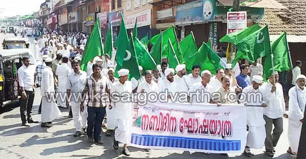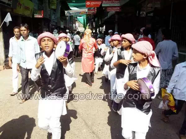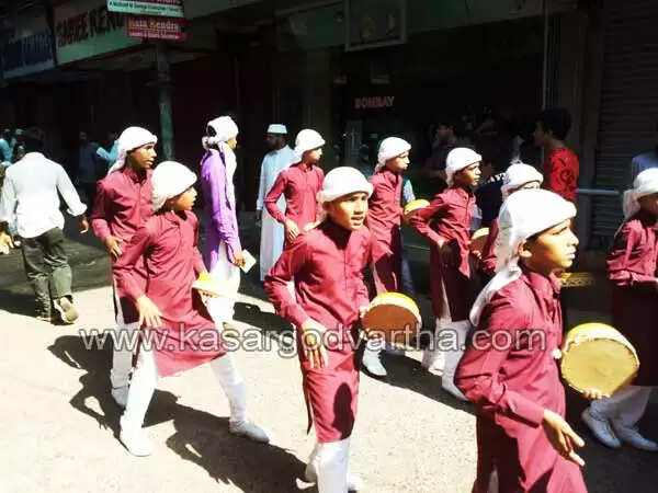നെല്ലിക്കുന്ന് മുഹിയുദ്ദീന് ജമാഅത്ത് കമ്മിറ്റിയുടെ ആഭിമുഖ്യത്തില് വ്യാഴാഴ്ച രാവിലെ കാസര്കോട് നഗരത്തില് ഘോഷയാത്ര നടന്നു. രാവിലെ എട്ടുമണിക്കാരംഭിച്ച ഘോഷയാത്ര ബീച്ച്റോഡ്, എയര്ലൈന്സ് ജംഗ്ഷന്, ബാങ്ക് റോഡ്, പഴയബസ് സ്റ്റാന്ഡ് എന്നിവിടങ്ങളിലൂടെ സഞ്ചരിച്ച് പള്ളം വഴി നെല്ലിക്കുന്ന് അന്വാറുല് ഉലൂം എ.യു.പി.സ്കൂള് പരിസരത്ത് സമാപിച്ചു.