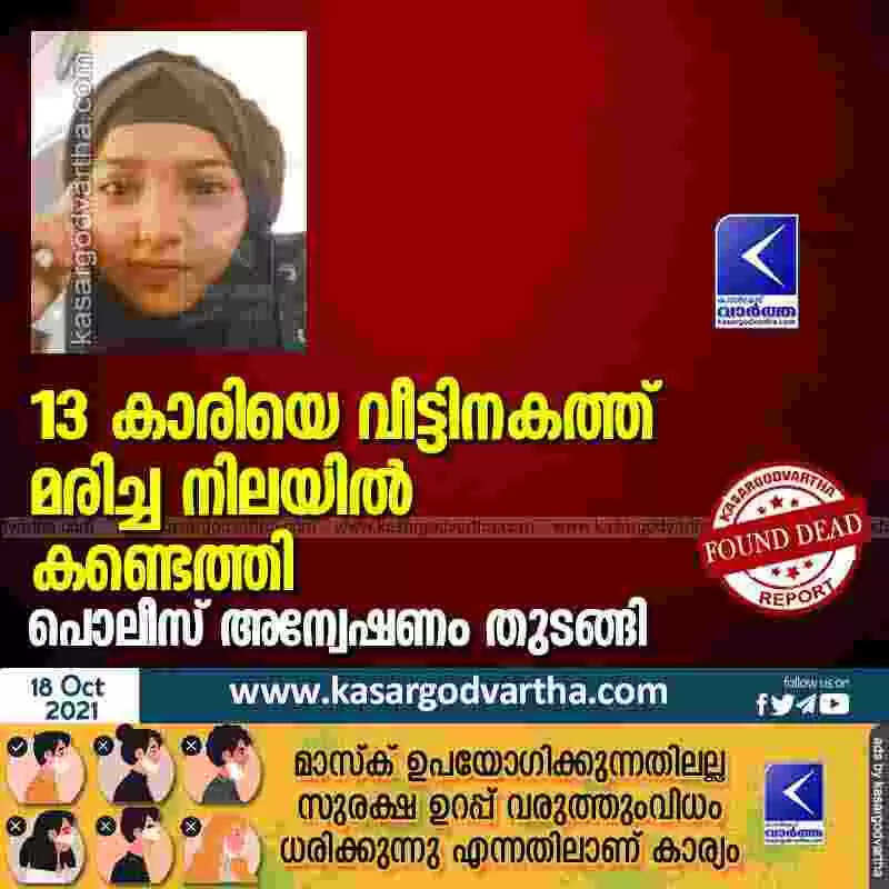 13 കാരിയെ വീട്ടിനകത്ത് മരിച്ച നിലയിൽ കണ്ടെത്തി; പൊലീസ് അന്വേഷണം തുടങ്ങി