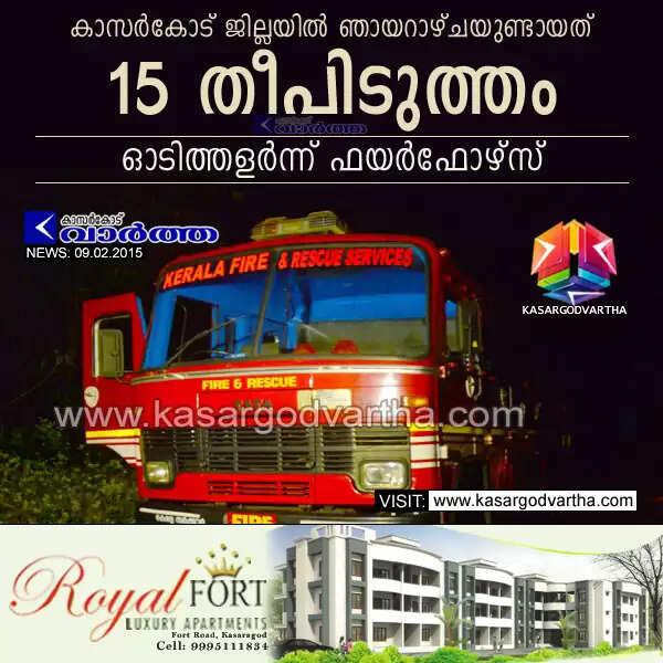 Keywords: Kasaragod, Kerala, fire force, fire, Students, Sunday, Parents, 15 fire incidents in Kasaragod on Sunday.
