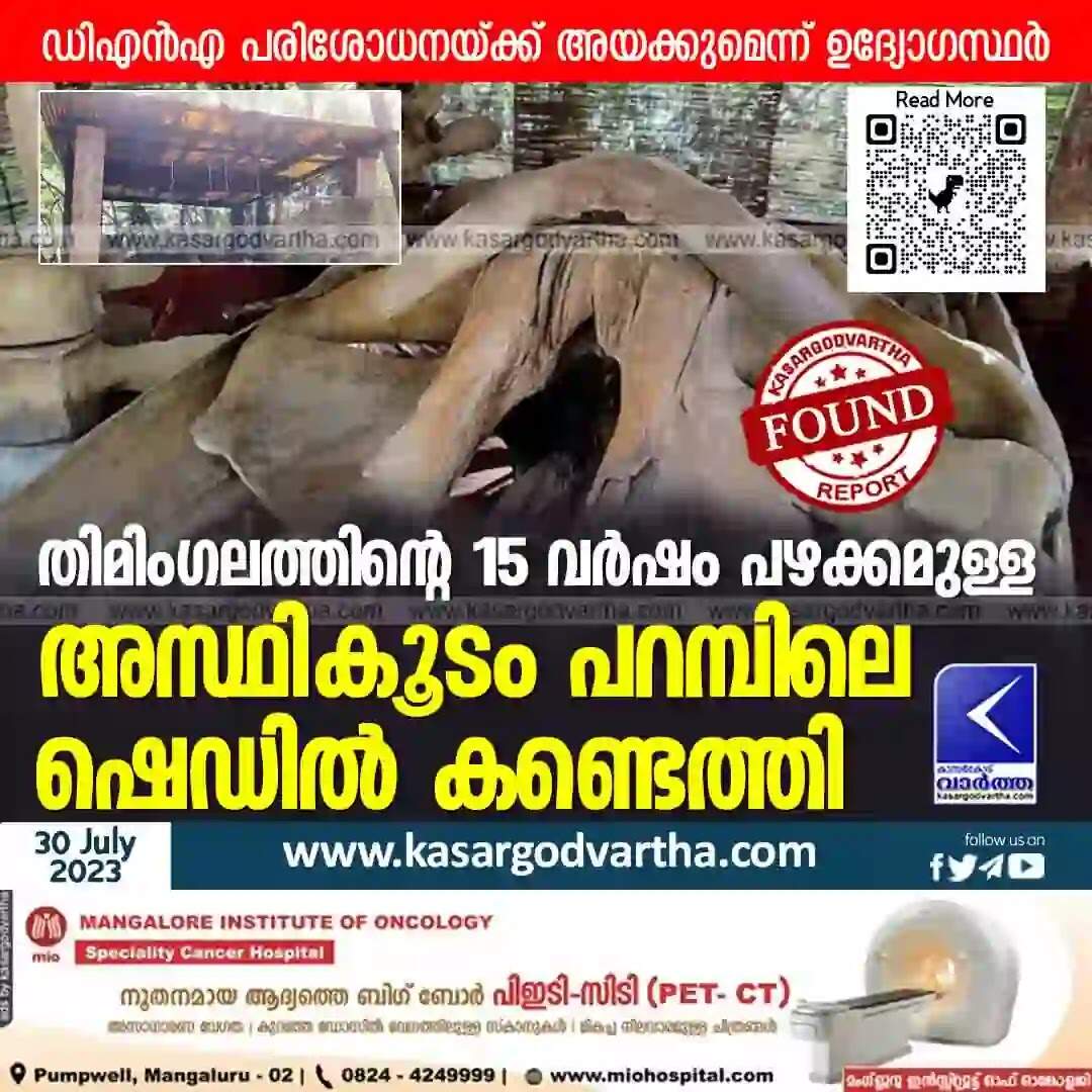 സ്ഥലമുടമയെ വനംവകുപ്പ് ഉദ്യോഗസ്ഥര് ബന്ധപ്പെട്ടപ്പോള് 2007ല് അസ്ഥികൂടം കിട്ടിയെന്നും 27000 രൂപ മുടക്കി ഇത് സൂക്ഷിക്കാന് വേണ്ടി ഷെഡ് നിര്മിച്ചതാണെന്നും അറിയിച്ചതായി വൃത്തങ്ങള് പറഞ്ഞു. കണ്വതീർഥ കടപ്പുറത്ത് കരക്കടിഞ്ഞ തിമിംഗലമാണിതെന്നാണ് ഉടമ പറയുന്നത്. തിമിംഗല അസ്ഥി സൂക്ഷിക്കുന്നത് കുറ്റകരമാണ്.