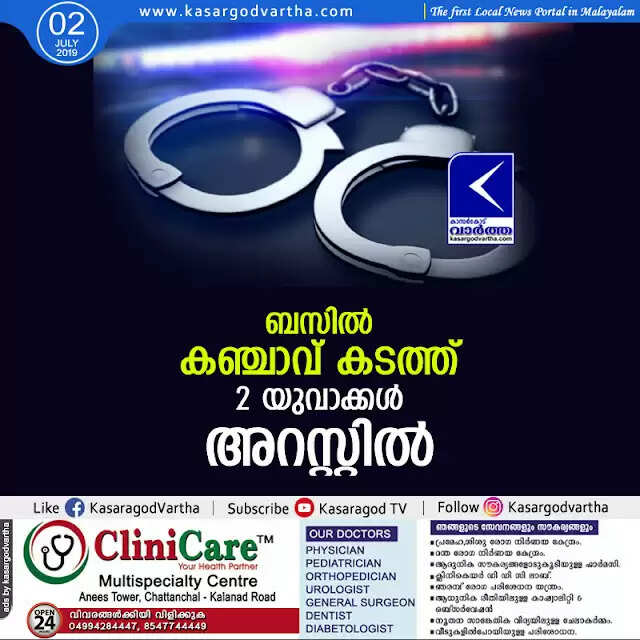 ബസില് കഞ്ചാവ് കടത്ത്; 2 യുവാക്കള് അറസ്റ്റില്