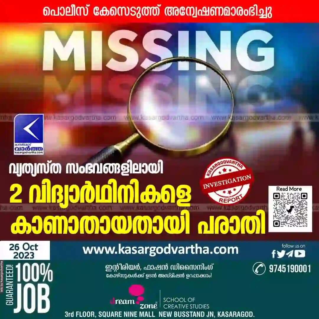 Keywords: Missing, Police, Malayalam News, Kerala News, Kasaragod News, Police Investigation, 2 female students reported missing.