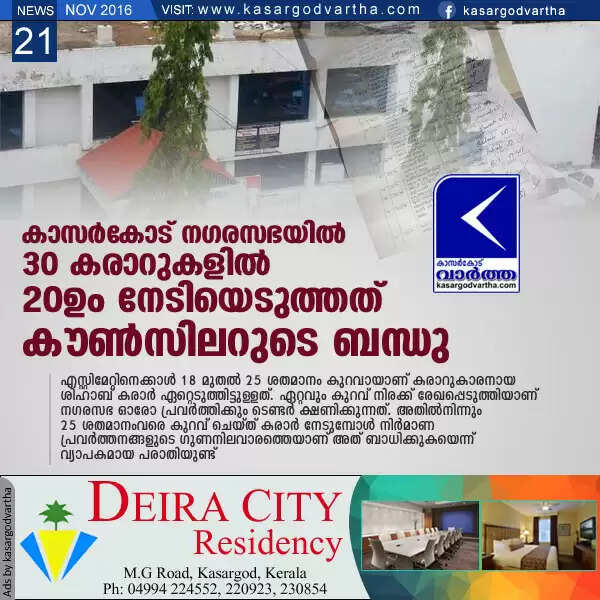 കാസര്കോട് നഗരസഭയില് 30 കരാറുകളില് 20ഉം നേടിയെടുത്തത് കൗണ്സിലറുടെ ബന്ധു