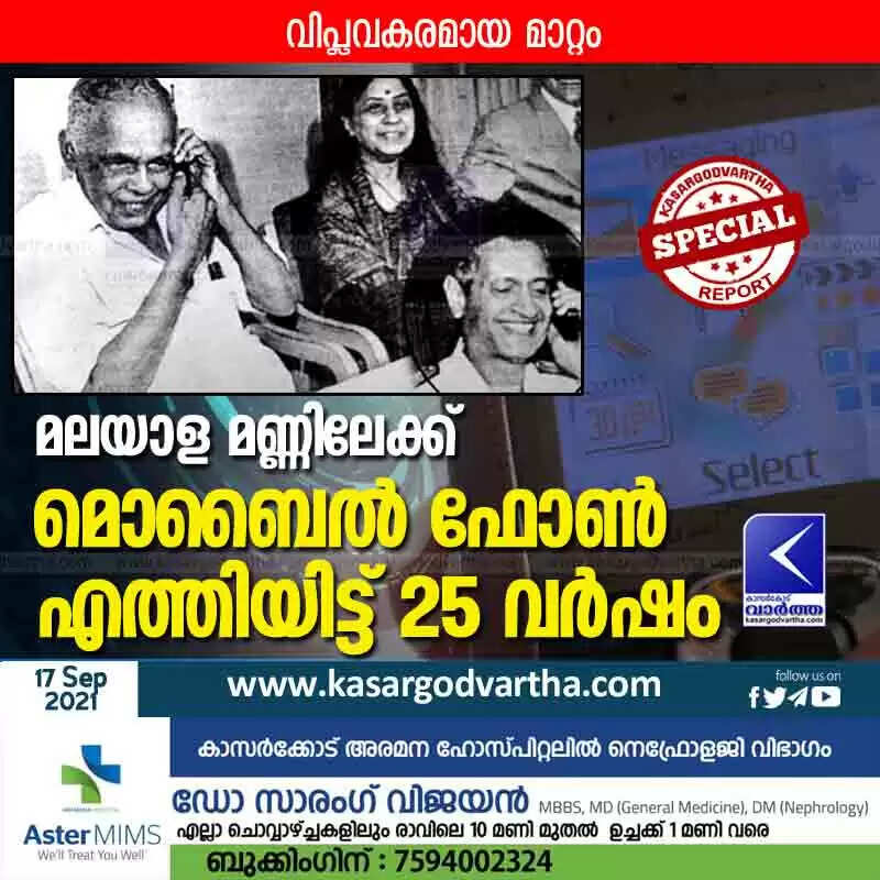 Keywords: Kasaragod, News, Kerala, Malayalam, Mobile Phone, Top-Headlines, 25th anniversary of Kerala's first mobile phone call.