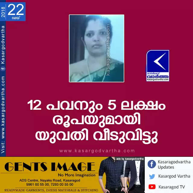 12 പവനും 5 ലക്ഷം രൂപയുമായി യുവതി വീടുവിട്ടു