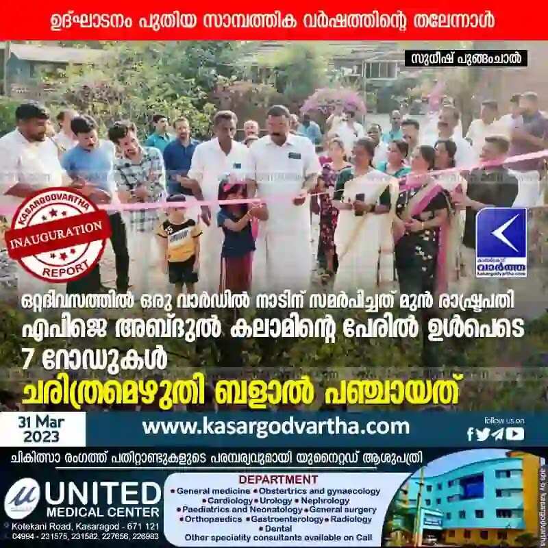Roads | ഒറ്റദിവസത്തിൽ ഒരു വാർഡിൽ നാടിന് സമർപിച്ചത് മുൻ രാഷ്ട്രപതി എപിജെ അബ്ദുൾ കലാമിന്റെ പേരിൽ ഉൾപെടെ 7 റോഡുകൾ; ചരിത്രമെഴുതി ബളാൽ പഞ്ചായത്