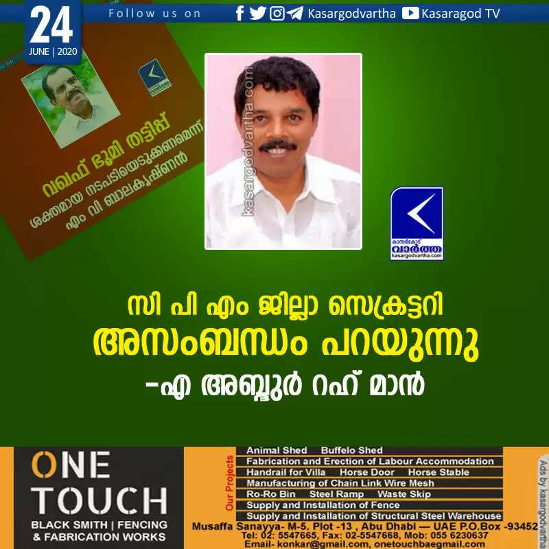 സി പി എം ജില്ലാ സെക്രട്ടറി അസംബന്ധം പറയുന്നു : എ അബ്ദുർ റഹ് മാൻ