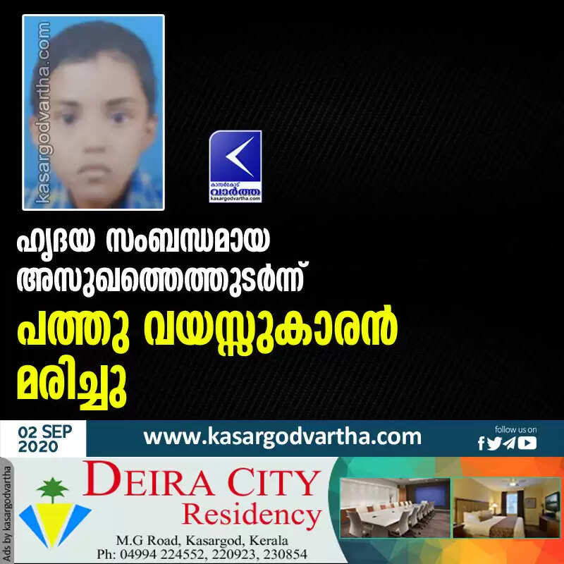 Keywords: Kasaragod, Kerala, News, Boy, Death, Cardiac Attack, Bandaduka, A ten-year-old boy has died of cardiac arrest