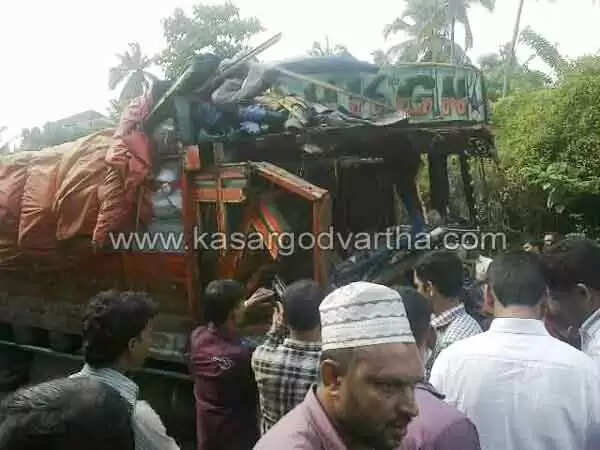 ബേവിഞ്ച വളവില് ബസും ലോറിയും കൂട്ടിമുട്ടി ലോറി ഡ്രൈവര് മരിച്ചു; നിരവധിപേര്ക്ക് പരിക്ക്