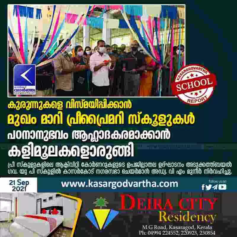 കാസർകോട്: (www.kasargodvartha.com 21.09.2021) പ്രീപ്രൈമറി കുട്ടികളെ സ്വീകരിക്കാന്‍ കൗതുകങ്ങളുടെ കളിമൂലകളൊരുക്കി കാസര്‍കോട് ബി ആര്‍ സി. സമഗ്രശിക്ഷാ കേരളയുടെ ആഭിമുഖ്യത്തില്‍ തയ്യാറാക്കിയ പ്രീ സ്‌കൂളുകളിലെ ആക്ടിവിറ്റി കോര്‍ണറുകളുടെ ഉപജില്ലാതല ഉദ്ഘാടനം അടുക്കത്ത്ബയല്‍ ഗവ. യു പി സ്‌കൂളില്‍ കാസര്‍കോട് നഗരസഭാ ചെയര്‍മാന്‍ അഡ്വ. വി എം മുനീര്‍ നിര്‍വഹിച്ചു.