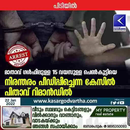 മാതാവ് ഗൾഫിലുള്ള 15 വയസുള്ള പെൺകുട്ടിയെ നിരന്തരം പീഡിപ്പിച്ചെന്ന കേസിൽ പിതാവ് റിമാൻഡിൽ